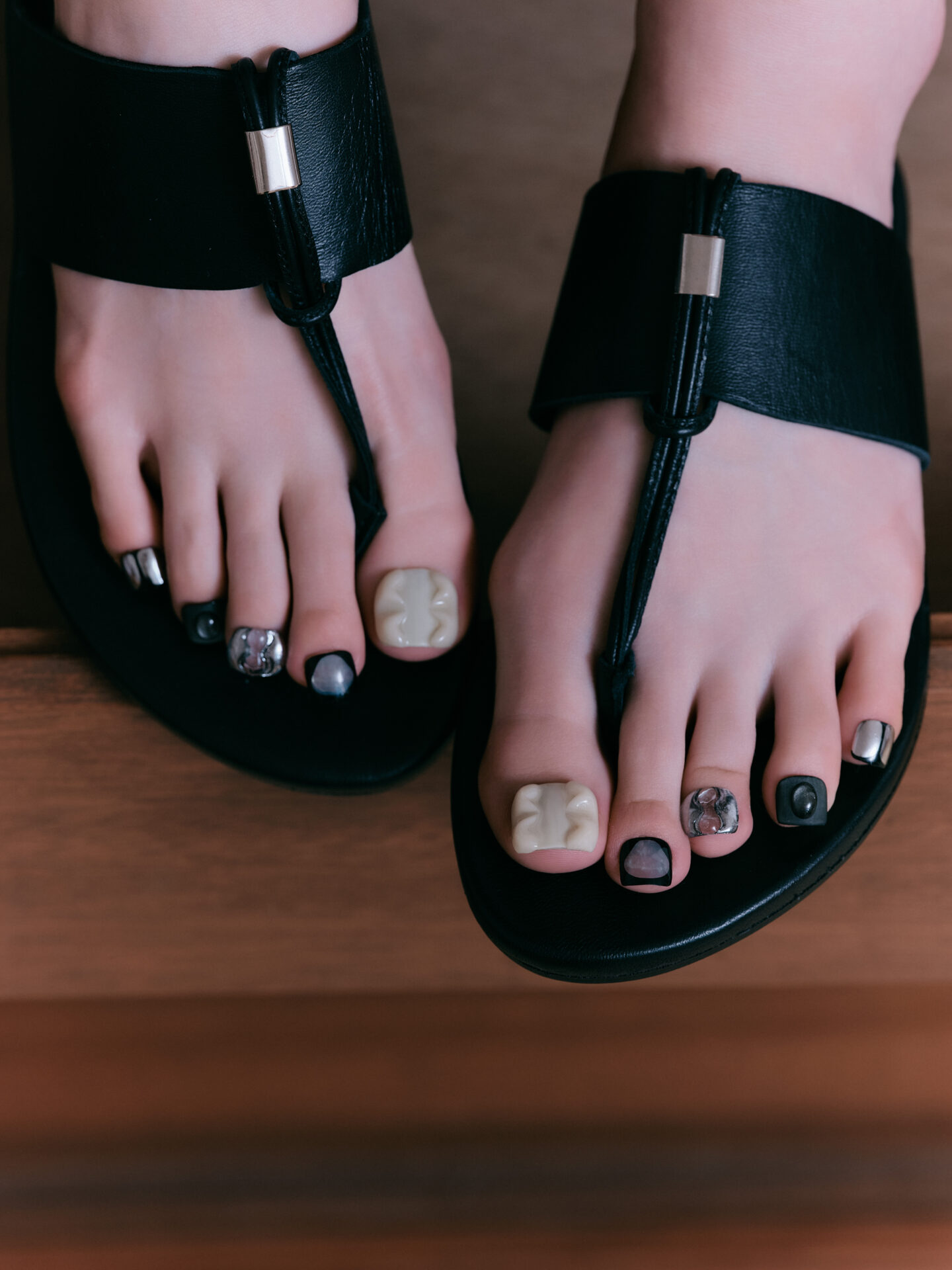 Unlike hand nails, foot nails are often seen all ten at once from above, so I considered how they would appear almost like a “display” when arranged together. For that reason, I approached each nail as a focal point in its own right.