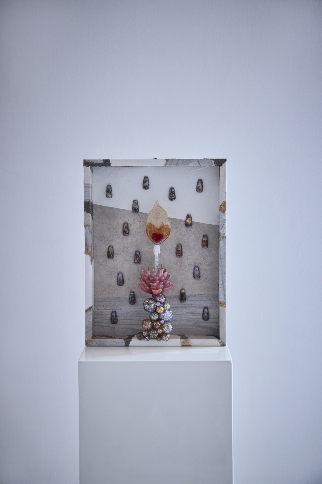 This work uses nail tips I had kept in my salon – pieces I created over the years – as an archive that records my own transformation and the passage of time as a nail artist. Over more than 20 years of producing countless designs, what I see now includes moments of immaturity, hesitation, and fluctuations in technique. Designs that once felt inadequate or failed to meet my expectations have become, with time, something deeply cherished – an honest reflection of my journey. By reconstructing these thoughts into a single structure, this piece embraces both success and incompletion, bringing together fragments of every trace of the past I have walked through.